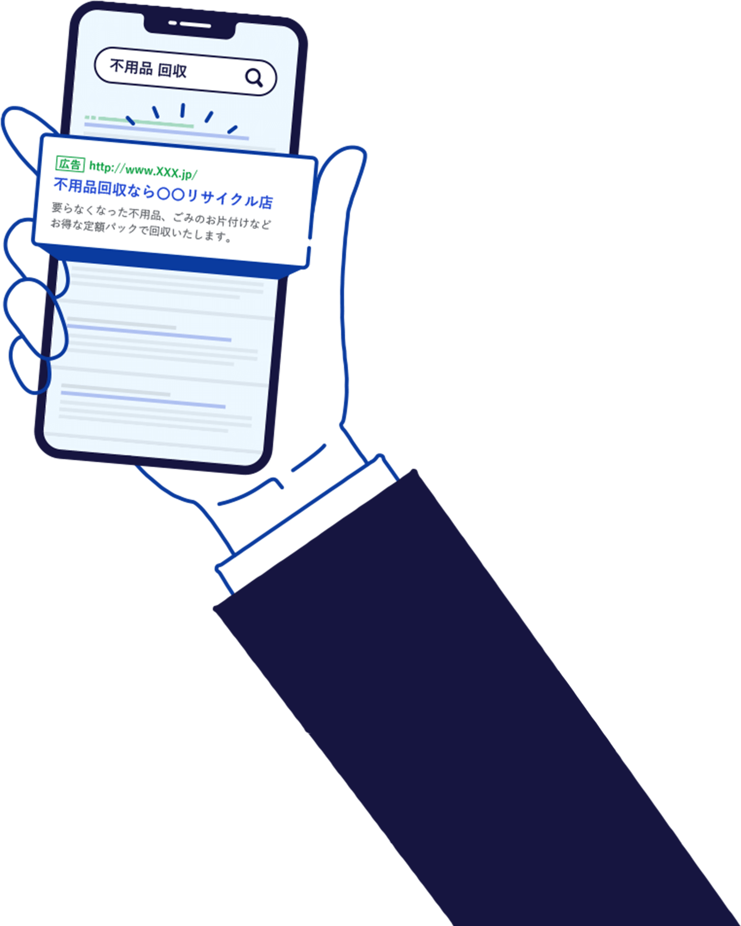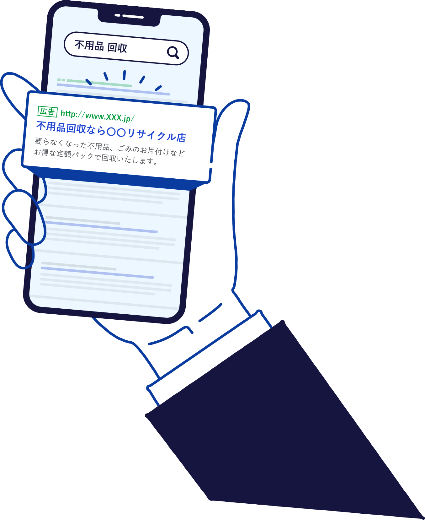 リスティング広告は、今まさに購入しよう(するかも)として検索している人に向けて、検索キーワードに関連した広告を表示するので、効率的にPRできます。