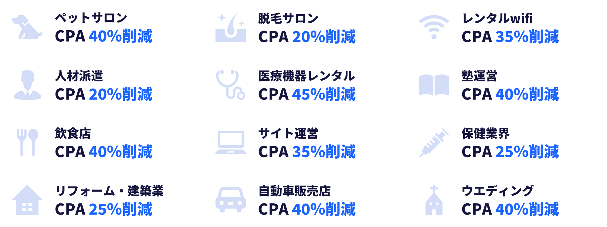 ※ 広告を出向する業種によっては最低運用額を設定させていただく場合がございます。