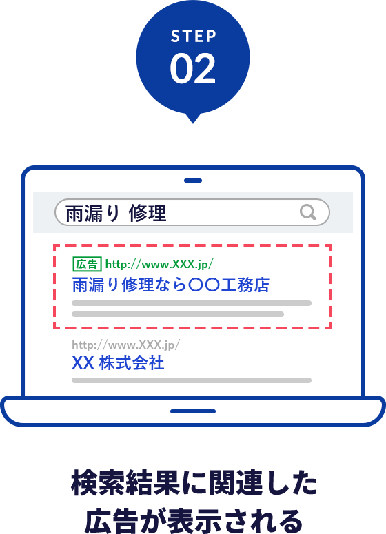 リスティング広告は、今まさに購入しよう(するかも)として検索している人に向けて、検索キーワードに関連した広告を表示するので、効率的にPRできます。